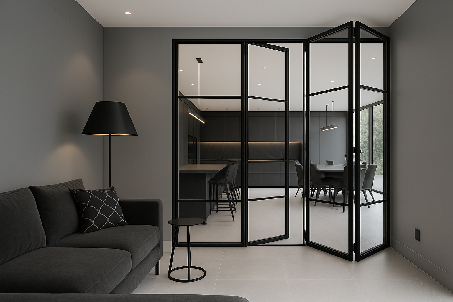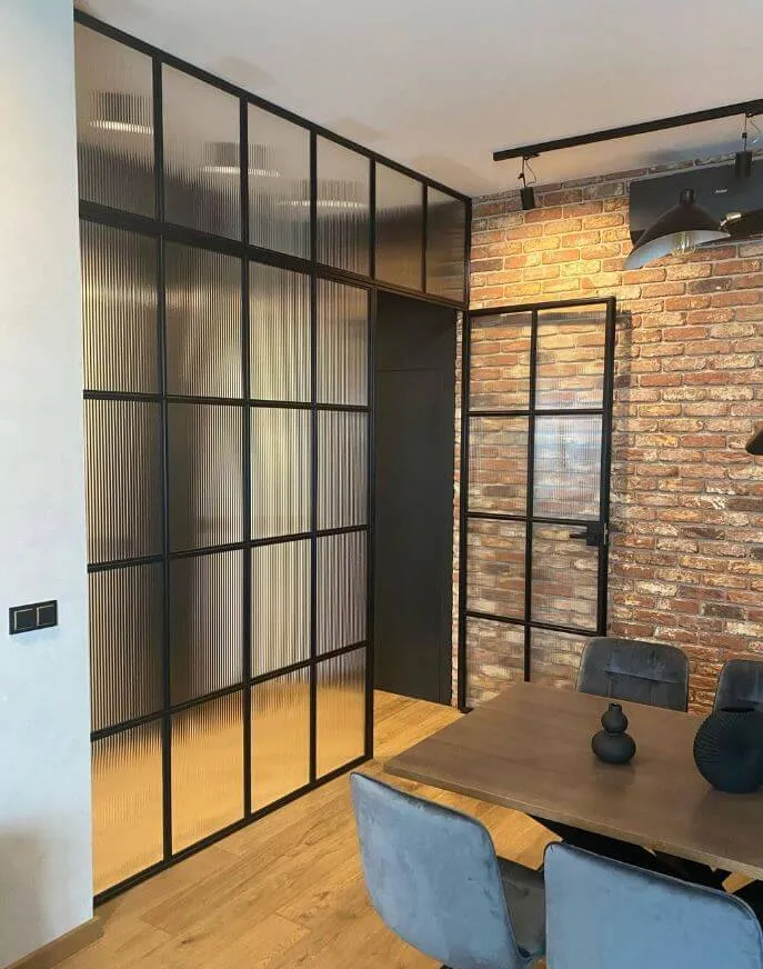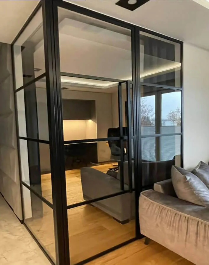 Steel-framed partitions divide rooms without sacrificing natural light. Perfect for offices, loft apartments, or homes where you want separation without a closed-off feeling.