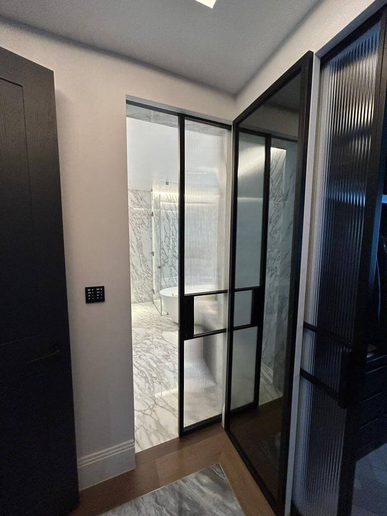 Internal steel and glass bifold doors bring a sleek, contemporary edge to interiors while maximizing space and light. Their slim steel frames and large glazed panels create an open, airy feel, allowing natural light to flow between rooms without compromising on separation. The folding design is perfect for saving space in smaller areas or creating flexible layouts, giving the option to fully open up or close off a room as needed. Durable, stylish, and highly versatile, these doors complement both modern and industrial-style homes while adding a touch of architectural elegance.